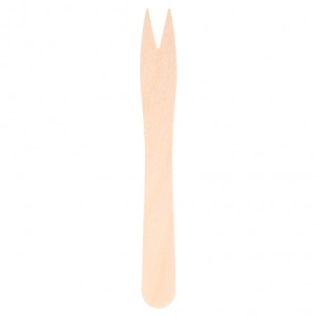 Si necesitas vajilla de madera, en Envases del Mediterráneo podrás encontrar elementos como este mini tenedor de madera de 85 mm.