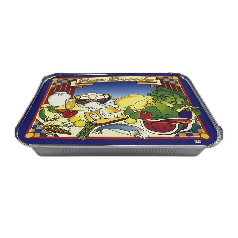 - Envase de aluminio mas tapa ideal para varias raciones de asado, paella, pollos troceados y mucho más.