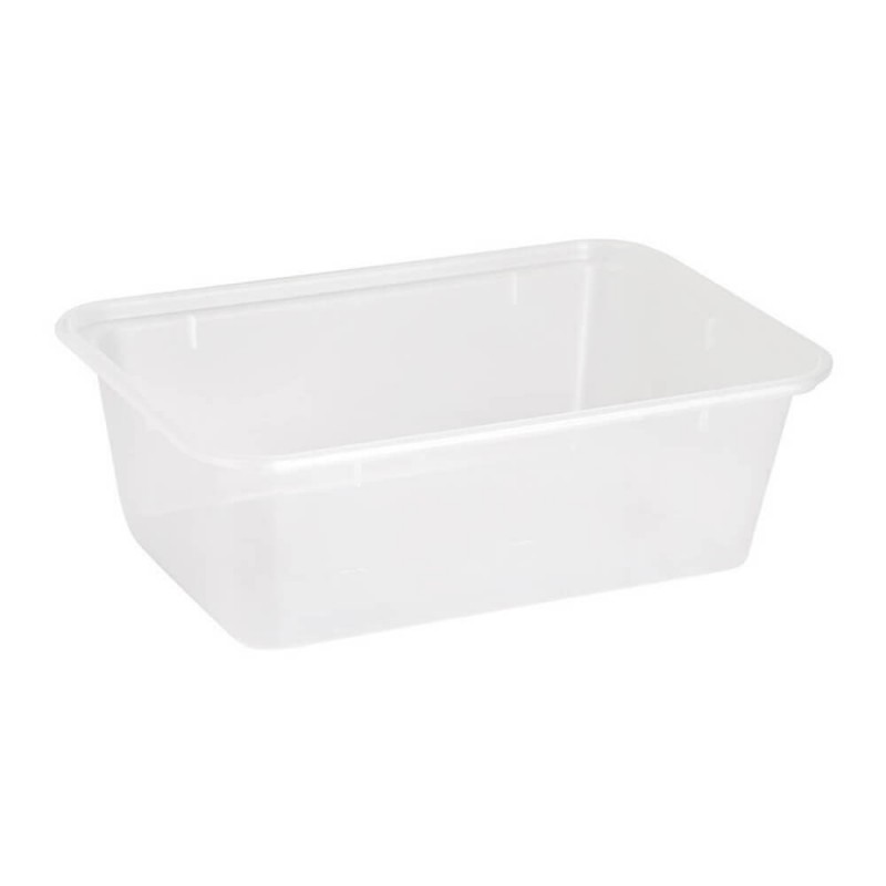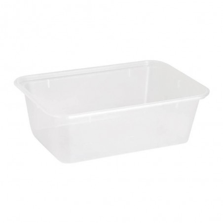 - Envase microondable de plástico fabricado en polipropileno homopolímero virgen inyectable transparente con tapa de cierre a presión.