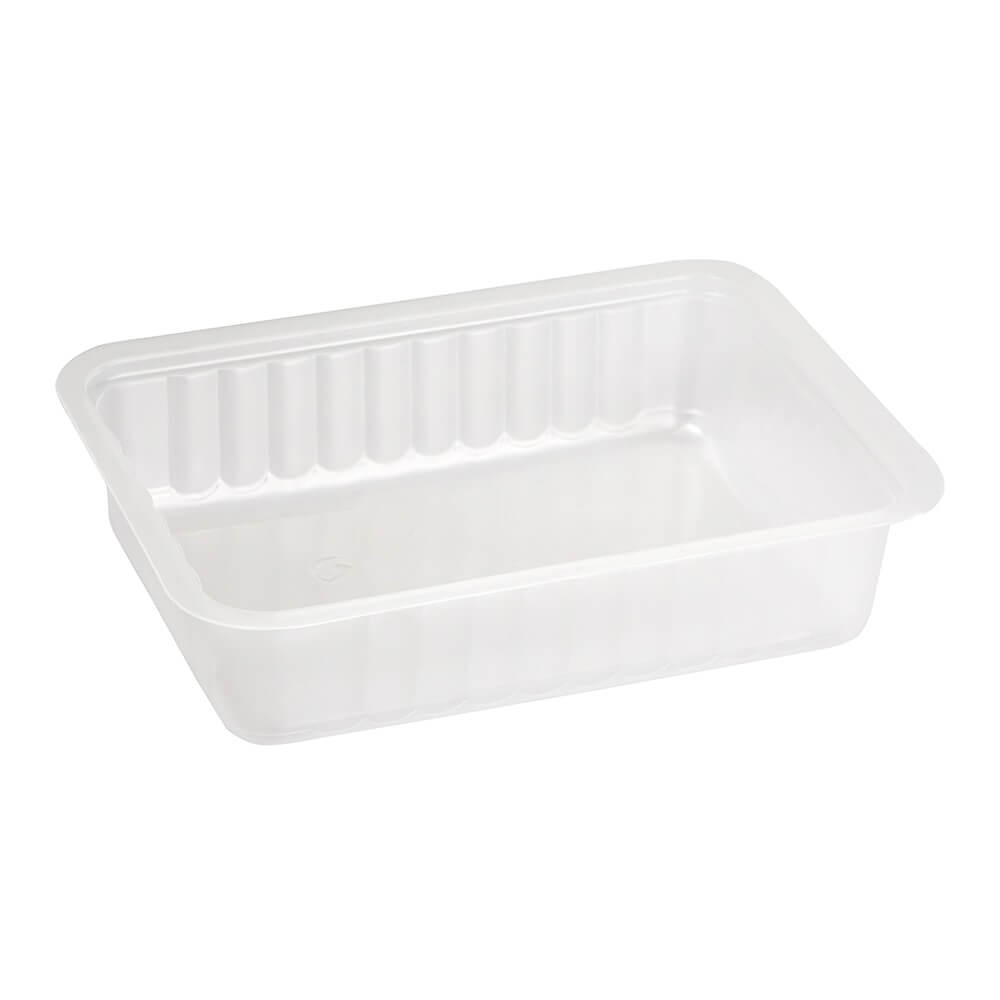 Tabuleiro descartável adequado para utilização a frio, a quente e no micro-ondas - Tabuleiro de plástico perfeito para uma porção de peixe cozido, peixe assado, etc. - O preço indicado é para 800unidades.