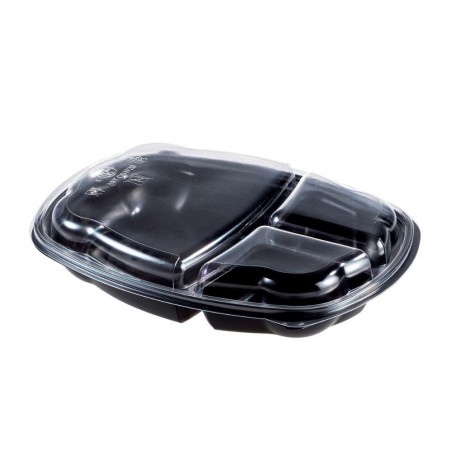 - Bandeja de plástico com dois compartimentos, perfeita para uma porção de comida e para adicionar separadamente a guarnição.